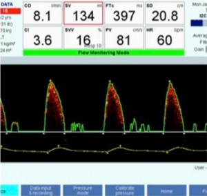 Extensive clinical trials have demonstrated that with direct measurement of blood flow, clinicians can correct individual patient circulating blood volume. It has been reported that 70% of patients have hypovolaemia (low blood volume) when they are prepared for surgery. The hypovolaemia results from the combined effects of poor diet, dehydration, preoperative fasting, the vasodilatory effects of anaesthetic agents and blood loss during the surgical procedure